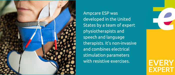 Ampcare ESP was developed in the United States by a team of expert physiotherapists and speech and language therapists. It’s non-invasive and combines electrical stimulation parameters with resistive exercises. The programme uses a dual-channel electrotherapy system with a pair of electrodes, placed submentally in order to stimulate the supralaryngeal muscles and/or with a facial placement to address oral deficits. Electrical stimulation is used in combination with simultaneous oral and/or laryngeal exercises, with the intended outcome of improved quality of muscle contraction and swallowing function. Mira Bou Akar undertook specialist training to be able to use Ampcare ESP as part of a rehabilitation programme and explains what that process was like.