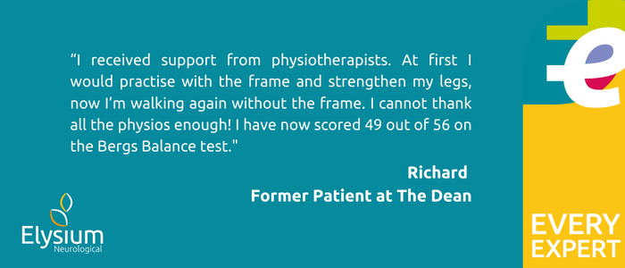 “After a stay in hospital recovering, I was then moved to The Dean, and by this point some of my mobility had returned but I could barely walk and I was very shaky. They have something here called the Bergs Balance test. It is scored out of 56; I scored nine.”