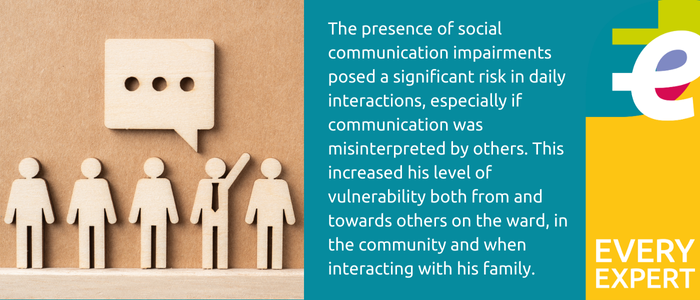 “The presence of social communication impairments posed a significant risk in daily interactions if ER’s intended communication was misinterpreted by others. This increased his level of vulnerability both from and towards others on the ward, in the community and when interacting with his family.”