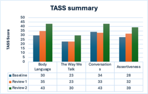 “I began by completing an assessment of self-awareness and self-esteem – Talkabout recommend that before even starting to work on social skills you must explore these first. If you have poor awareness of yourself and others, how can you have an accurate awareness of how you behave? Consequently, changing these behaviours will not be possible if insight is lacking.