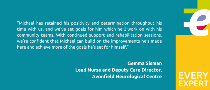 “Michael has retained his positivity and determination throughout his time with us, and we’ve set goals for him which he’ll work on with his community teams. With continued support and rehabilitation sessions, we’re confident that Michael can build on the improvements he’s made here and achieve more of the goals he’s set for himself.”